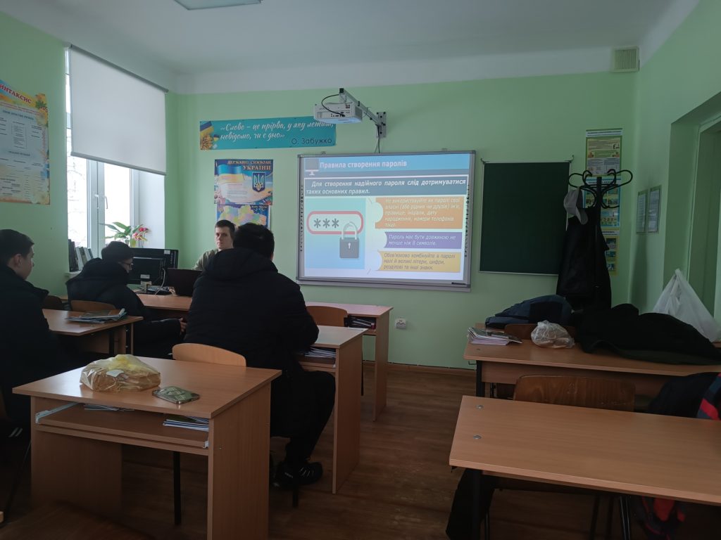Під час зустрічі учасники обговорили, як захистити особисті дані в мережі, створювати надійні паролі та користуватися двофакторною автентифікацією. Окрему увагу приділили розпізнаванню фішингу й підозрілих повідомлень, налаштуванням приватності в соціальних мережах, а також правилам безпечного спілкування онлайн і протидії кібербулінгу.